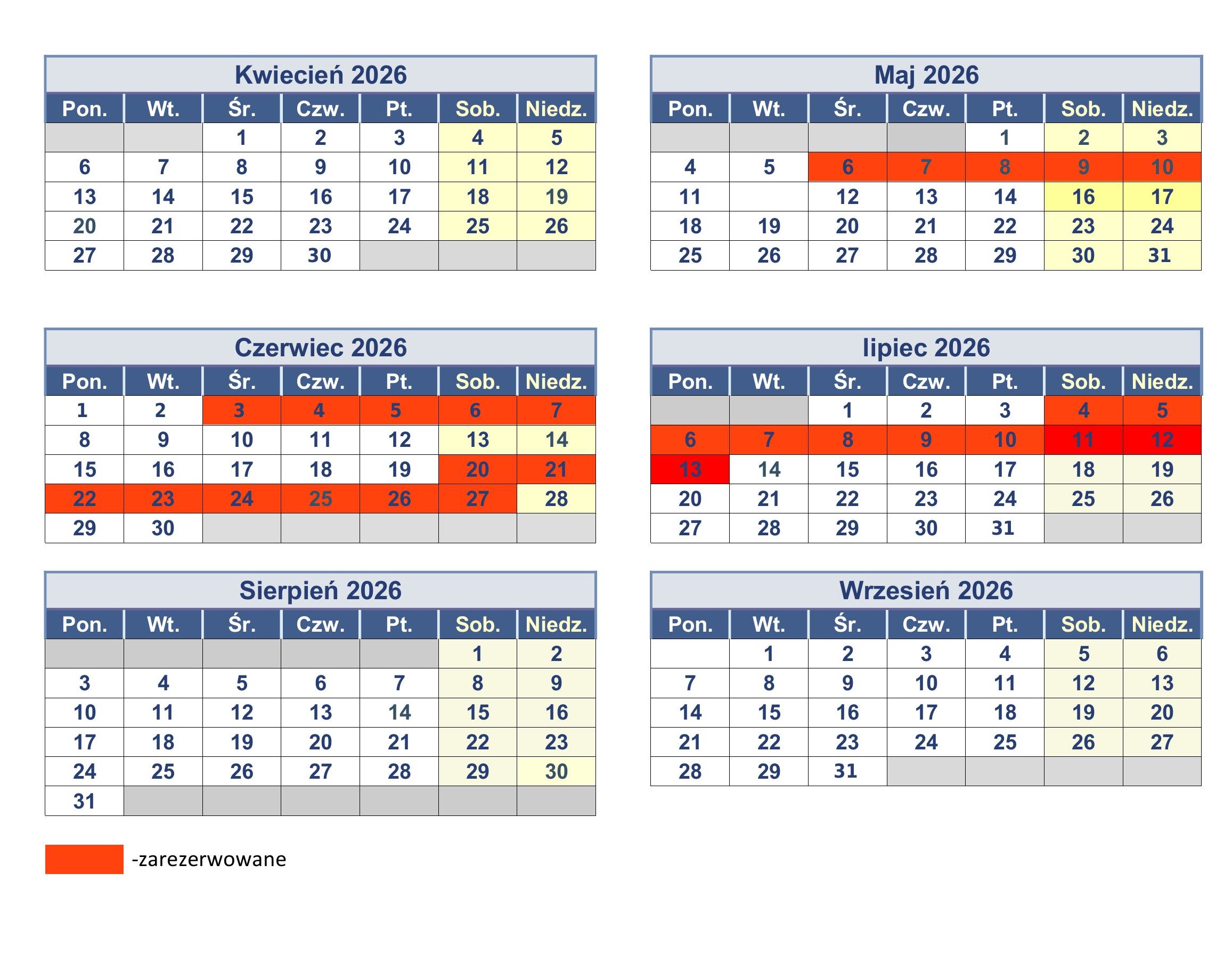 W celu dokonania rezerwacji proszę wysłać maila zawierającego: